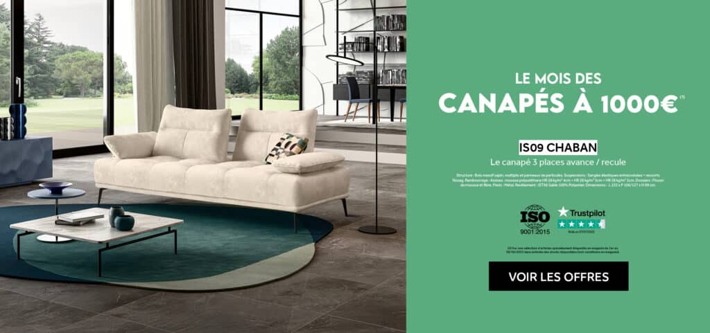Le mois des canapés à 1000€ du 01/10 au 30/10.